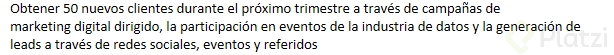 Specific (Específico): El objetivo debe ser claro y concreto. Responde a la pregunta: ¿Qué quiero lograr?