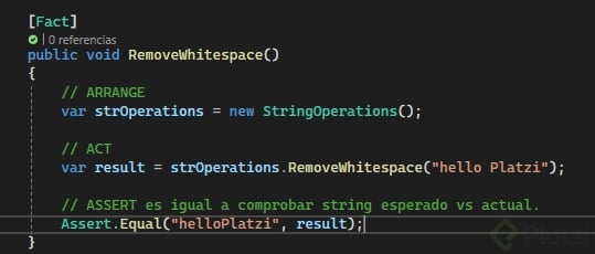- Assert: Finalmente, comprobamos que el resultado coincide con nuestras expectativas.