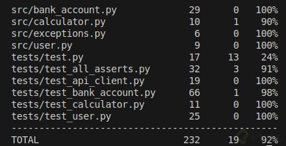 coverage run -m unittest discover -s tests, que corre las pruebas en la carpetatests.