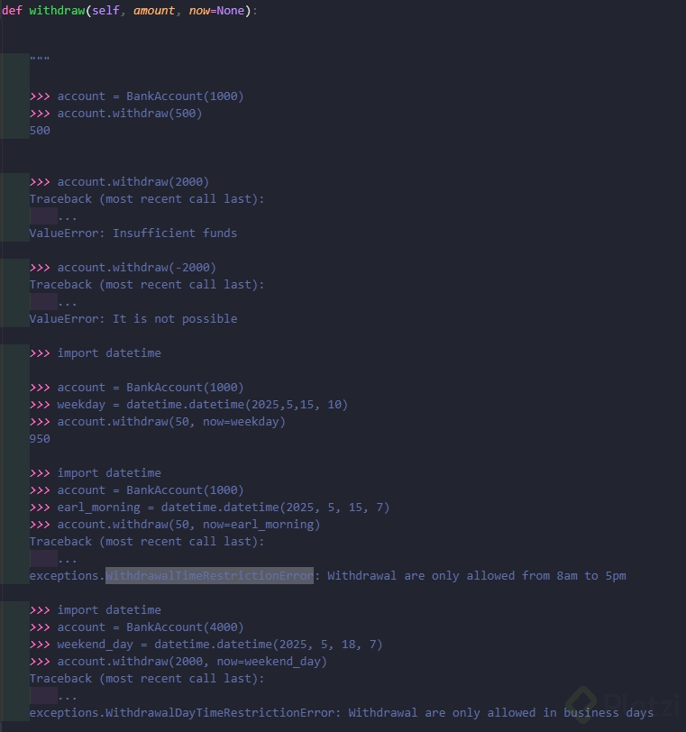 Esto se ejecutará como si estuvieras en el shell de Python, y esperará que la salida sea 12. Si el resultado no coincide con lo esperado, Doctest te notificará el error.