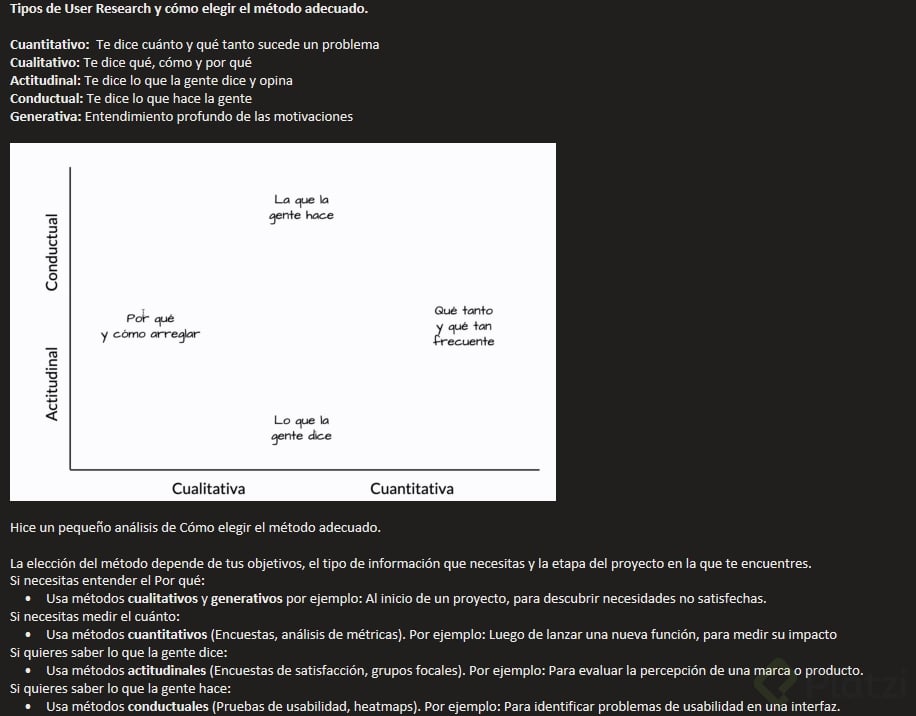 La investigación de usuarios es esencial para diseñar soluciones efectivas que respondan a las necesidades reales de los usuarios. Conocer los distintos tipos de investigación nos permite llenar esos huecos de conocimiento sobre cómo interactúan las personas con un producto. Dependiendo de lo que desees saber, existen diferentes enfoques que puedes utilizar.