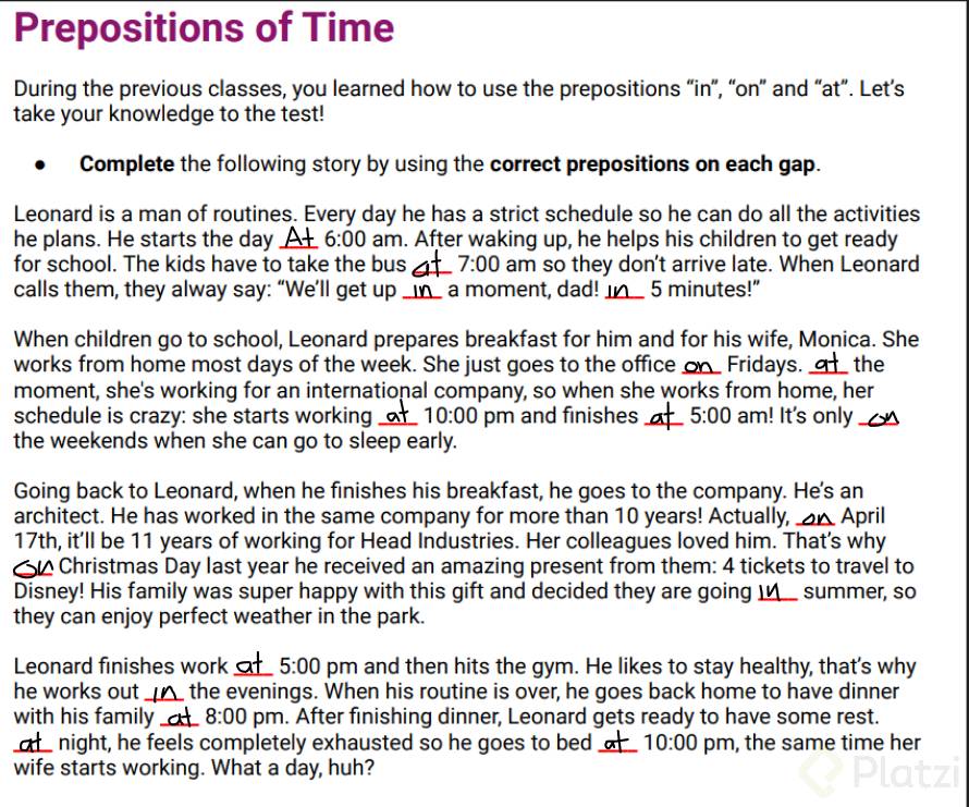Te animamos a continuar tus prácticas con ejercicios adicionales. Completa las actividades del cuaderno de ejercicios y observa el progreso que puedes hacer dominando estas preposiciones de tiempo. Sin prisa, aprende a tu ritmo y disfruta del viaje lingüístico. ¡Nos vemos en el próximo módulo!