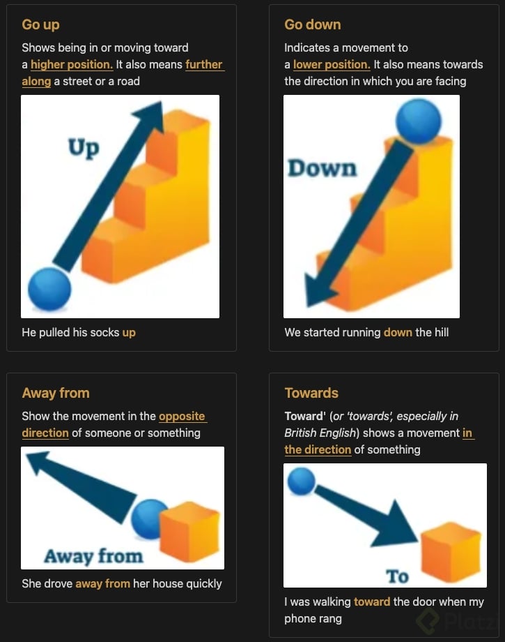 Preposiciones de Movimiento: Subir, Bajar, Lejos de, Hacia
