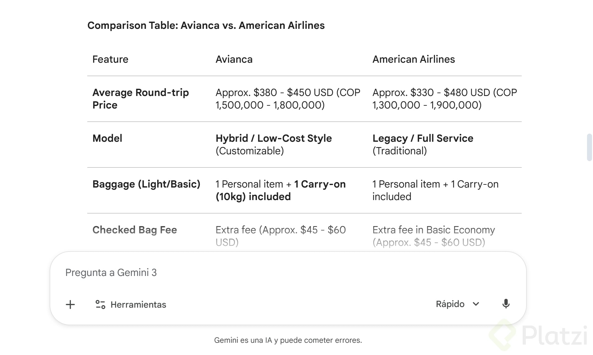 Escribir estas comparaciones refuerza tanto el vocabulario de viajes como el dominio de los comparativos. ¿Qué aerolíneas comparaste y cuál resultó ser la mejor opción? Comparte tus respuestas en los comentarios.