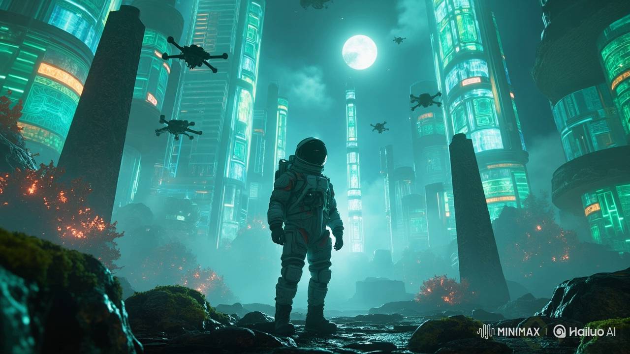 Carga la imagen horizontal del astronauta en un entorno desconocido y describe claramente la escena en el prompt: - Ejemplo de prompt: "La cámara sobrevuela lentamente un planeta alienígena cubierto de niebla mientras un astronauta camina entre las rocas." - Configuración sugerida: Modo profesional, duración entre 5-10 segundos y creatividad media alta. - Evita errores visuales incluyendo en el prompt: "borroso, deformado, artefactos y distorsión".