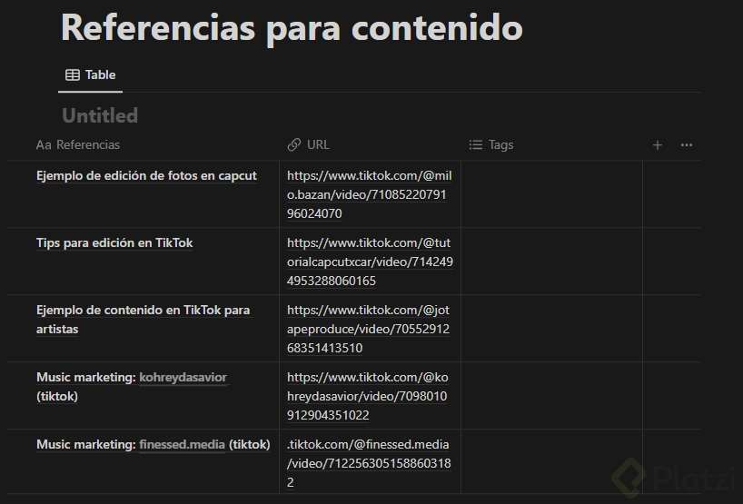 A veces, solo necesitamos un poco de inspiración para desbloquear nuestra creatividad. Para ello, te recomiendo que añadas tres referencias de TikToks que te gusten mucho y que quisieras compartir y darles like. Estas referencias pueden servirte como fuente de inspiración y ayudarte a generar nuevas ideas.