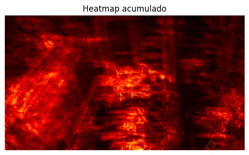 # Ejemplo conceptual del códigofgbg = cv2.createBackgroundSubtractorMOG2(history=500, varThreshold=16, detectShadows=True)heatmap = np.zeros((height, width), dtype=np.float32)whileTrue: ret, frame = cap.read()ifnot ret:break# Aplicar sustracción de fondo fgmask = fgbg.apply(frame)# Acumular la máscara en el mapa de calor heatmap += fgmask