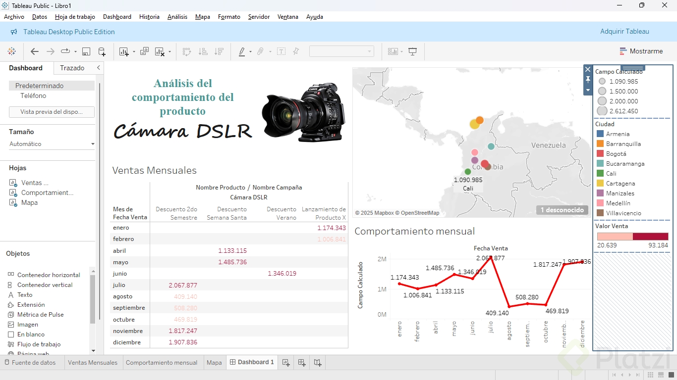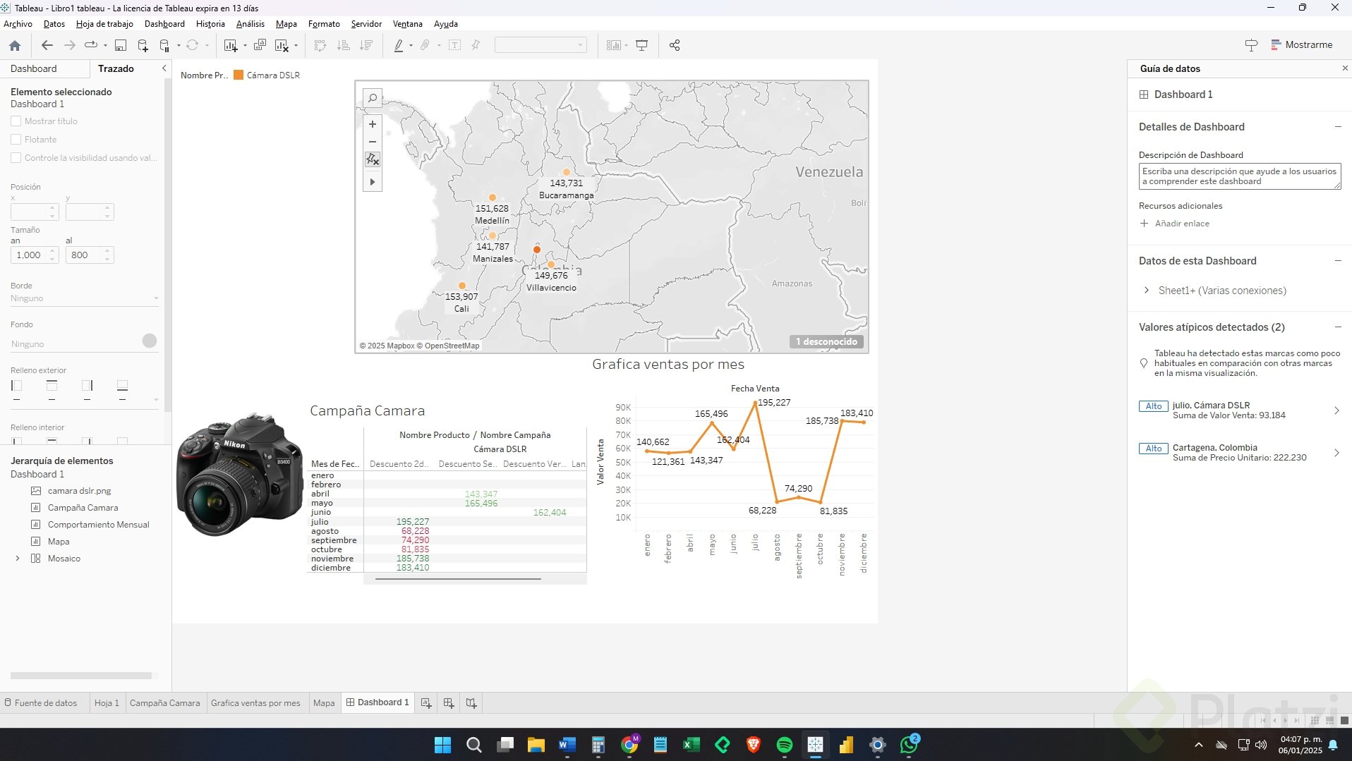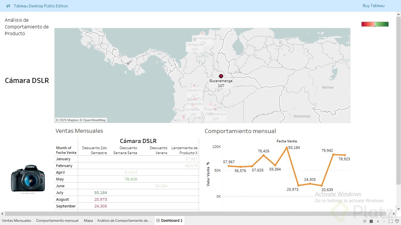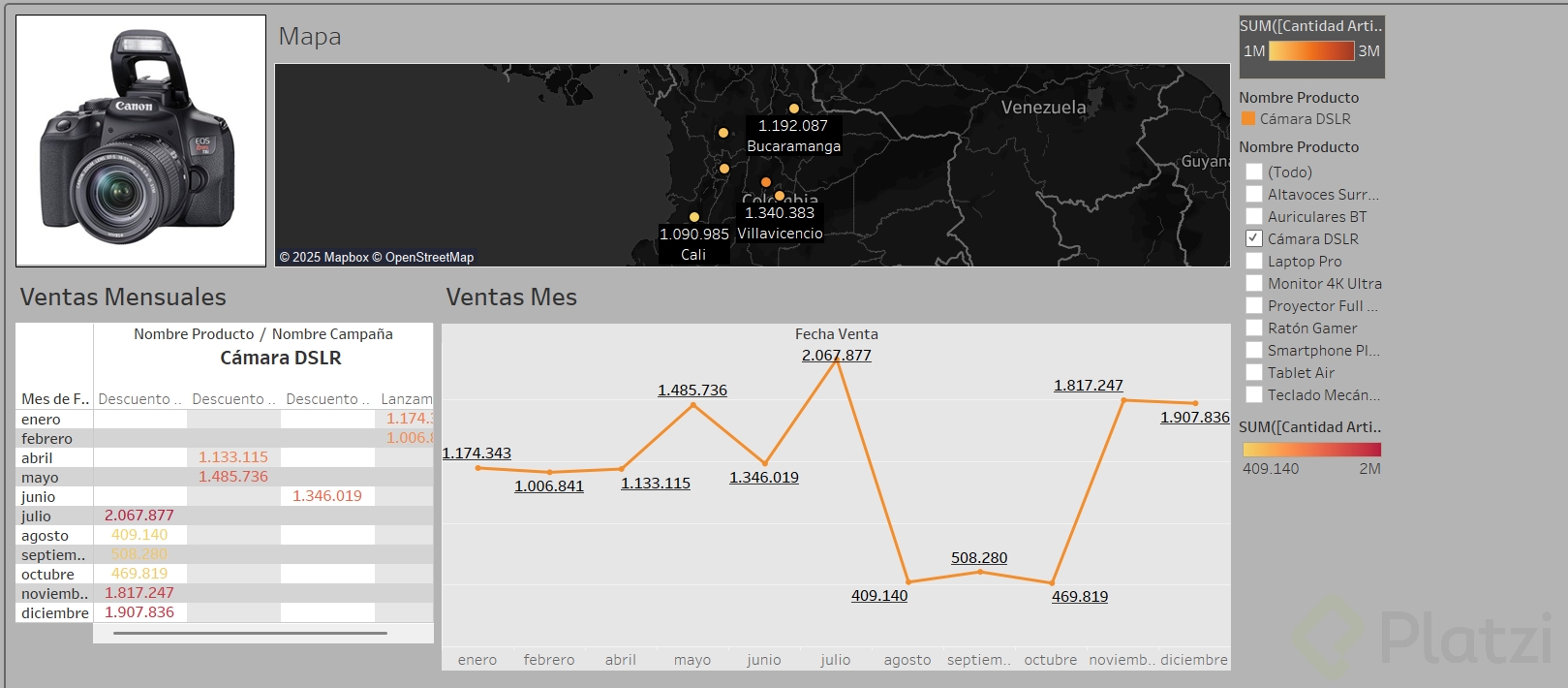 Un enfoque estratégico implica seleccionar un artículo específico que genere exclusividad con el fabricante, abriendo nuevas vías para ventas y negocios. En este caso, se optó por enfocarse en una cámara de fotografía, permitiendo analizar el impacto de diferentes campañas de marketing en sus ventas a lo largo del año. Mediante herramientas de visualización como Tableau, pudimos identificar qué meses fueron los más exitosos y cuáles requirieron mejoras.