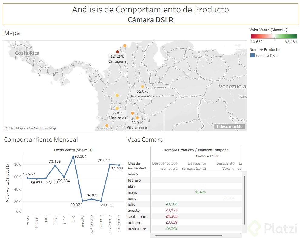 - Impacto por campaña y series temporales: Ubicadas en la parte inferior para complementar y soportar la información geográfica.