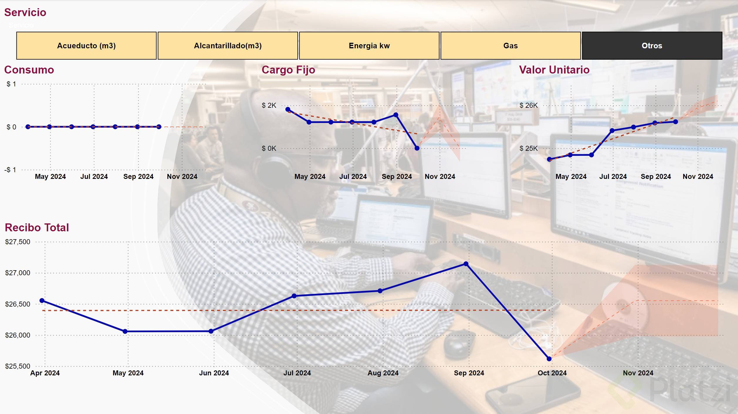 - Incluir líneas de tendencia para observar direcciones futuras de servicios individuales.