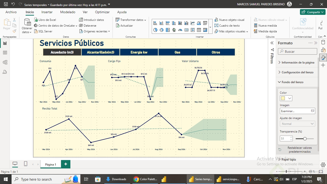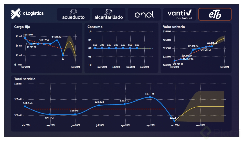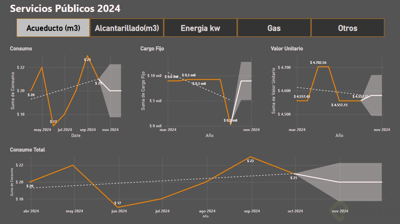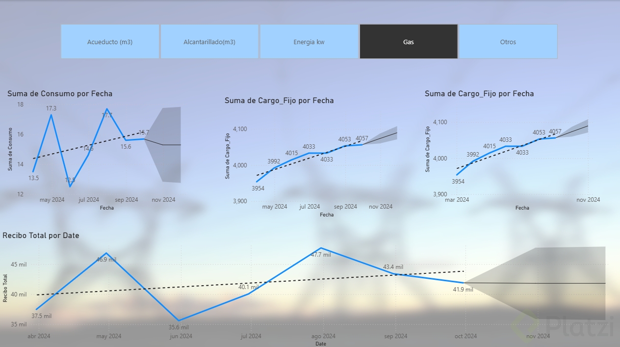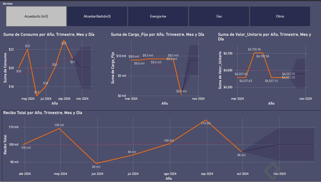 Para comprender plenamente el impacto de las series temporales, a continuación se detalla un ejemplo práctico mediante Power BI. Este enfoque se centra en ayudar a una compañía a predecir costos de servicios públicos.