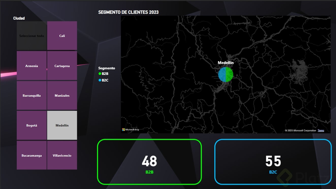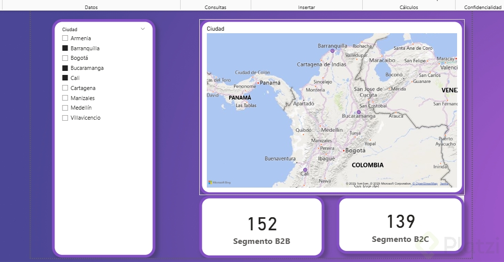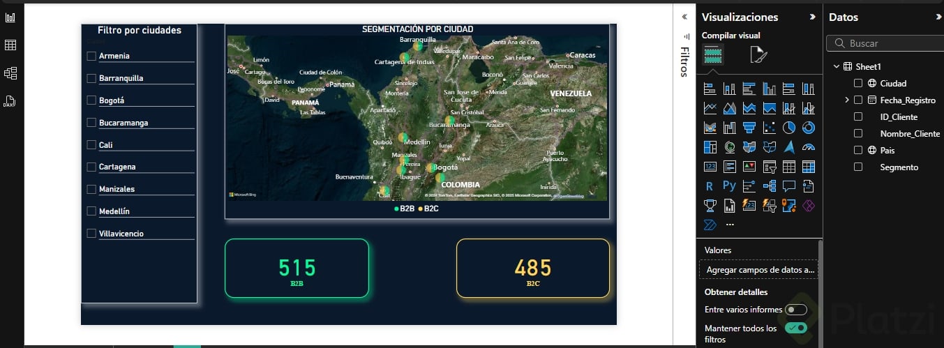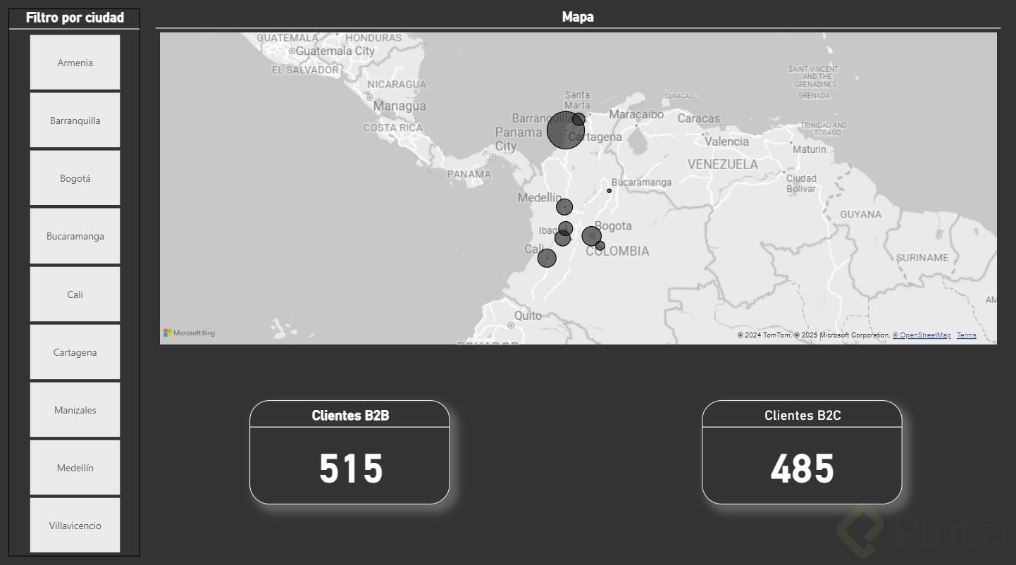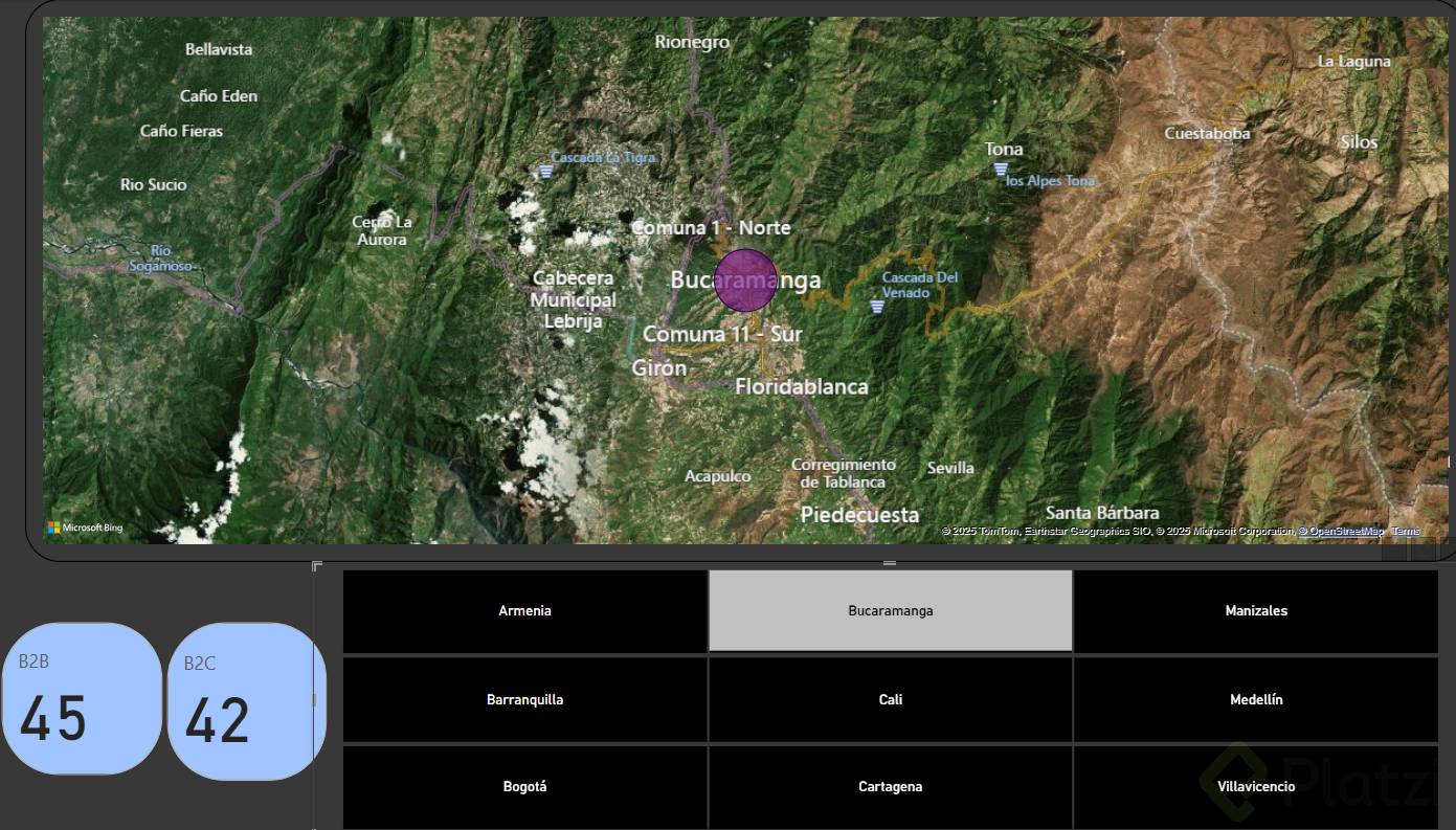 - Dinamismo con filtros: Configure el mapa y los KPIs para responder dinámicamente a los filtros, permitiendo al usuario ver cambios en tiempo real.