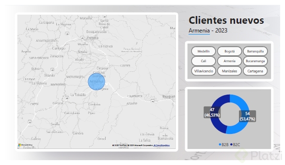Power BI ofrece herramientas como el mapa estándar y el mapa coroplético para representar ubicaciones geográficas. Debe seleccionarse la visualización adecuada en función de la información que se desea representar y el dinamismo que se pretende lograr en la interacción con el usuario.