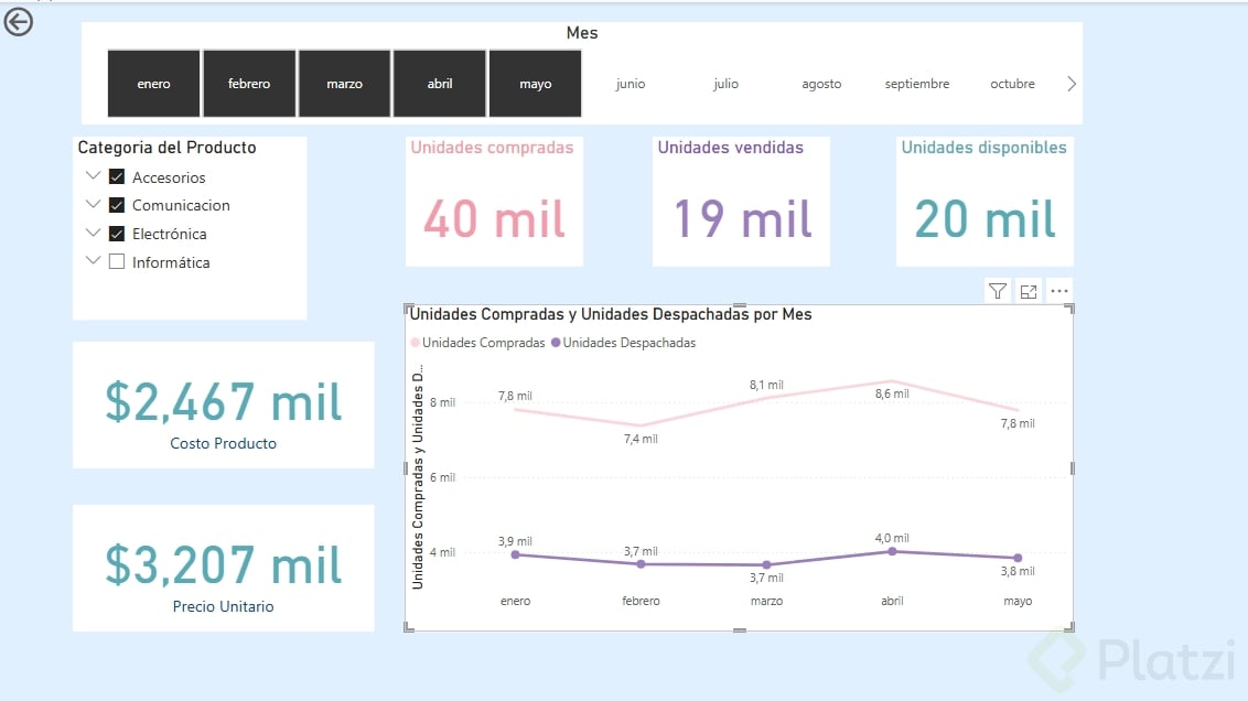 Con este flujo, integras estética, segmentación, llamados de atención, jerarquía del texto y el estilo F para capturar la atención del interesado y responder sus preguntas clave: unidades compradas, despachadas e inventario; más costo producto y precio unitario formateados correctamente. ¿Qué ajustes sumarías para tu audiencia? Comparte tu experiencia y cómo resolverías las preguntas de tus stakeholders.