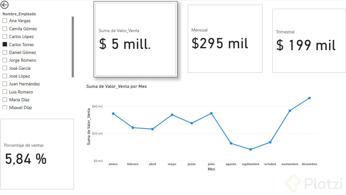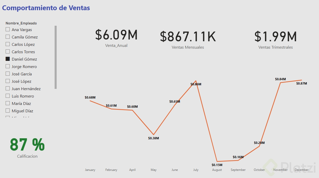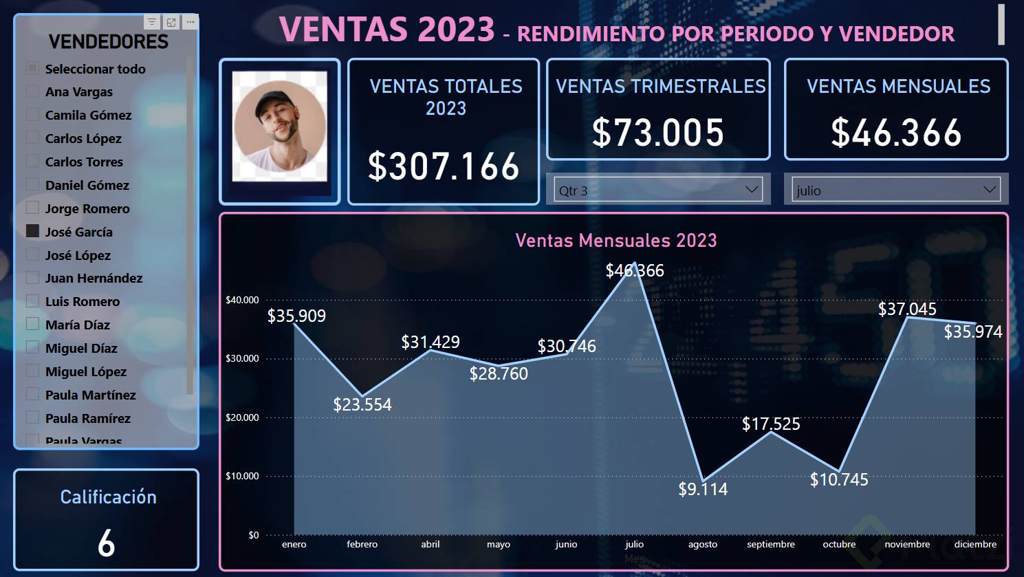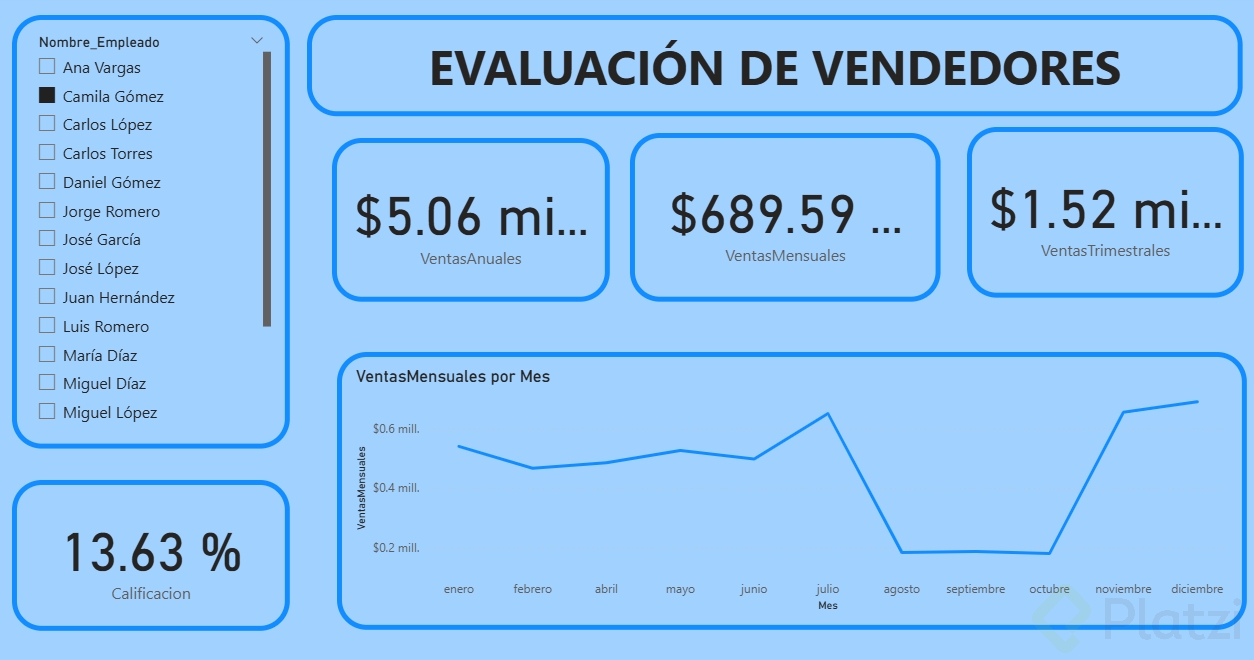 Diseñar un tablero de Business Intelligence puede parecer una tarea desafiante, pero con el enfoque y consideración adecuados de aspectos clave, es posible crear visualizaciones poderosas que realmente comuniquen la historia detrás de los datos. En este contexto, veremos cómo abordar el requerimiento de evaluar el impacto de los vendedores en las ventas trimestrales, mensuales y anuales de una compañía, generando además una calificación sobre el cumplimiento de sus metas anuales.