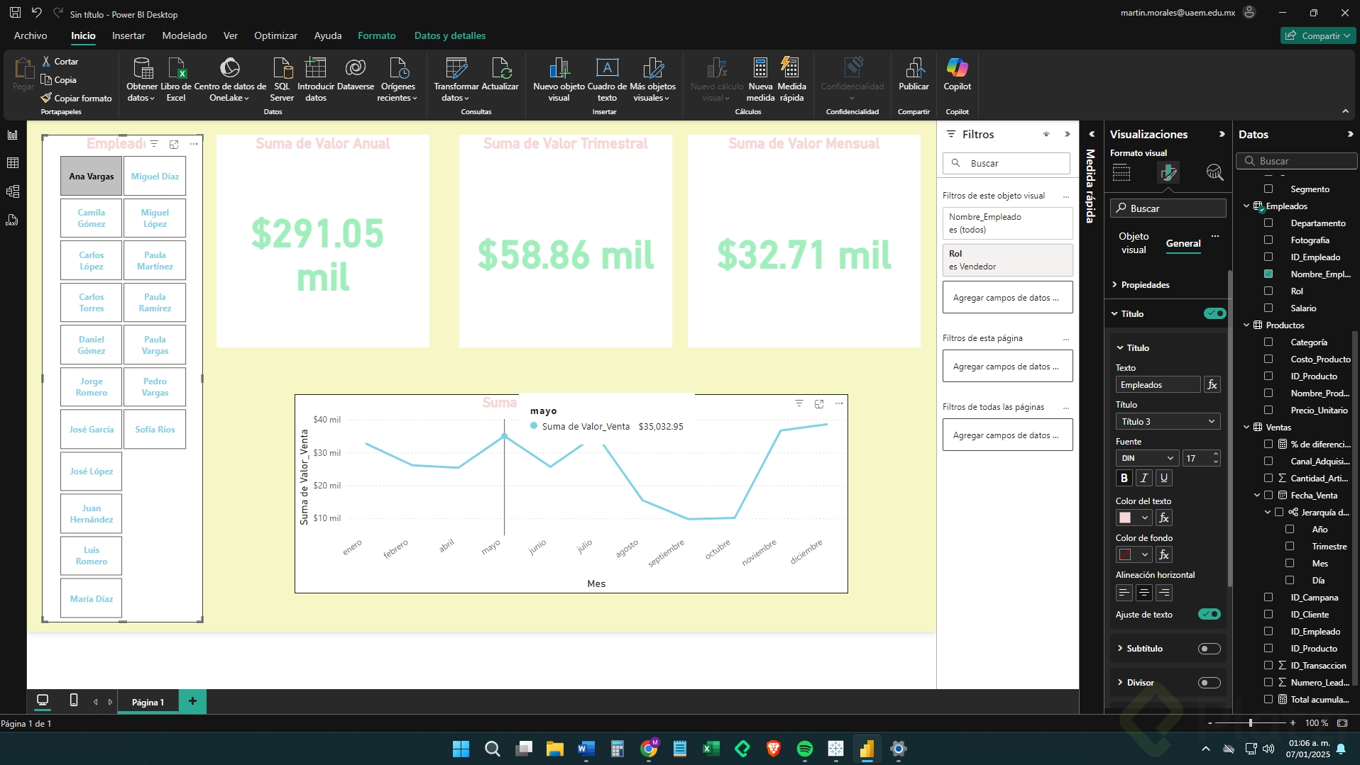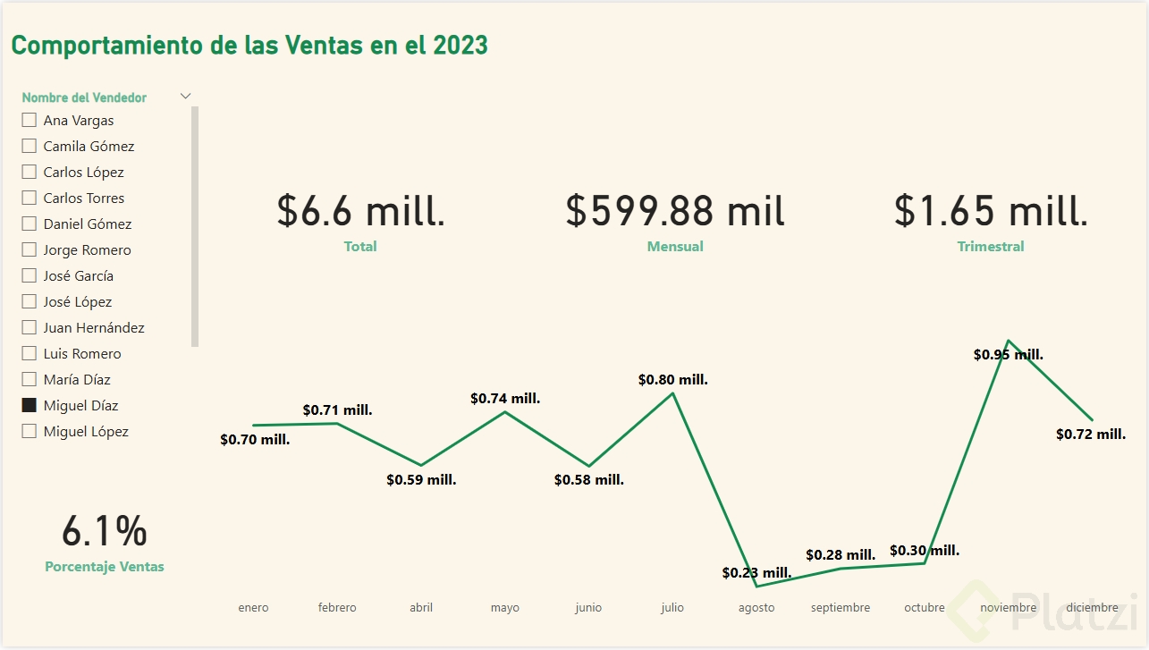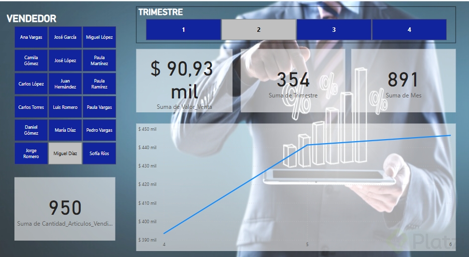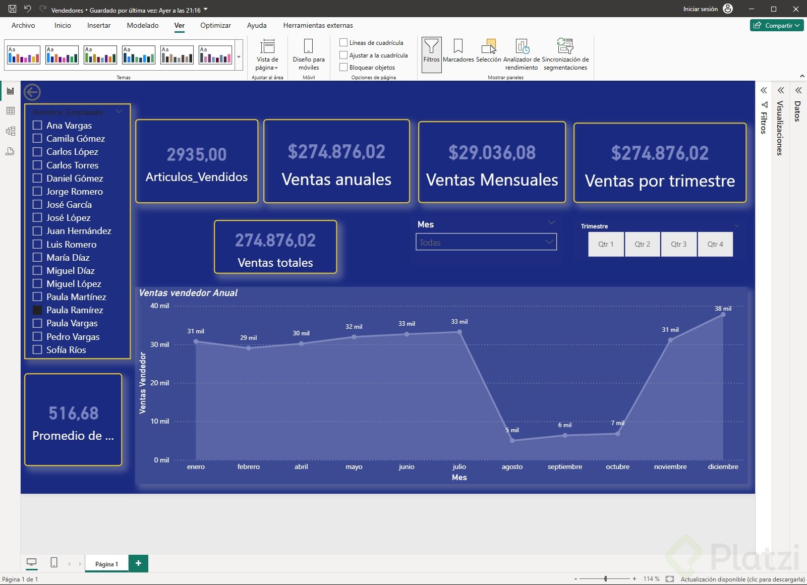Diseñar un tablero de Business Intelligence puede parecer una tarea desafiante, pero con el enfoque y consideración adecuados de aspectos clave, es posible crear visualizaciones poderosas que realmente comuniquen la historia detrás de los datos. En este contexto, veremos cómo abordar el requerimiento de evaluar el impacto de los vendedores en las ventas trimestrales, mensuales y anuales de una compañía, generando además una calificación sobre el cumplimiento de sus metas anuales.