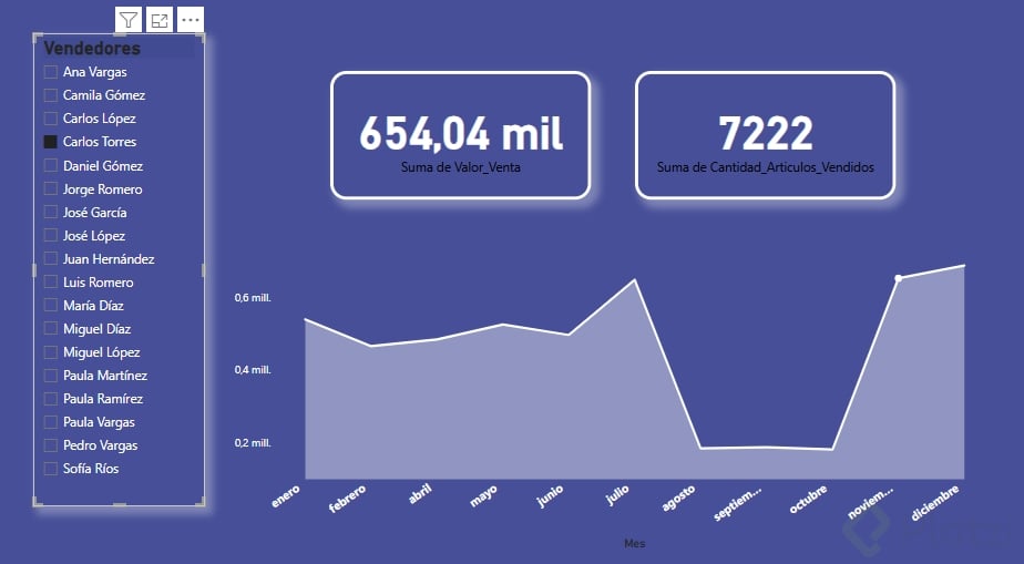 - Filtro por vendedor: Por medio de la herramienta, filtramos por rol para enfocarnos solo en los vendedores.