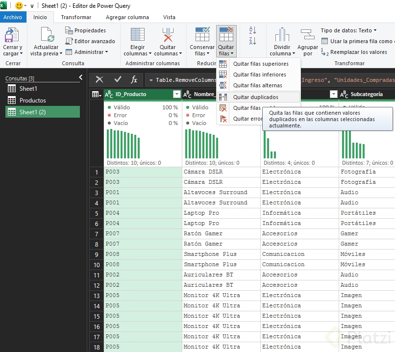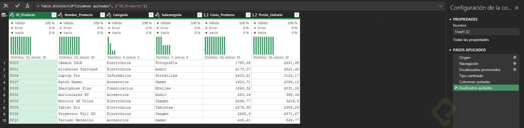 Con las tablas ya consolidadas en Excel, es recomendable realizar una segunda verificación en Power BI: