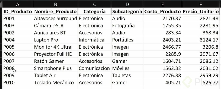- Tipos de datos: Identificamos y clasificamos los datos correctos, asegurándonos de tener texto donde se requiera, como en IDs de productos, y convertir a moneda los costos de productos, dado que implican valores monetarios.