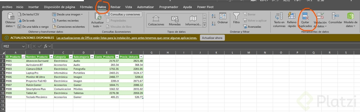 - Identificación de atributos únicos: Los atributos como categoría y subcategoría permiten reconocer y diferenciar entre productos con claridad.