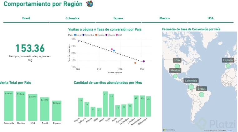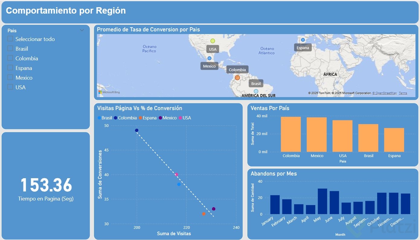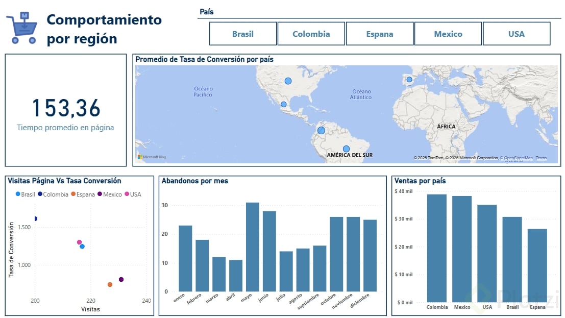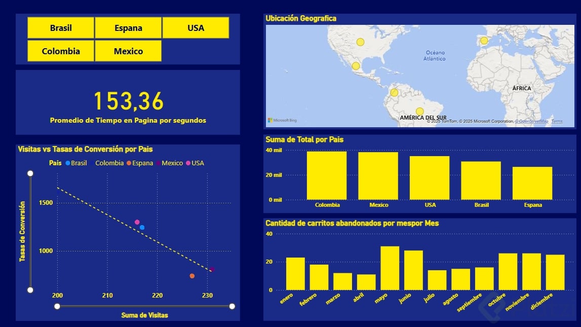 - Filtros interactivos: Permiten al usuario observar cómo cambian los patrones de comportamiento según seleccionen diferentes países en el filtro.