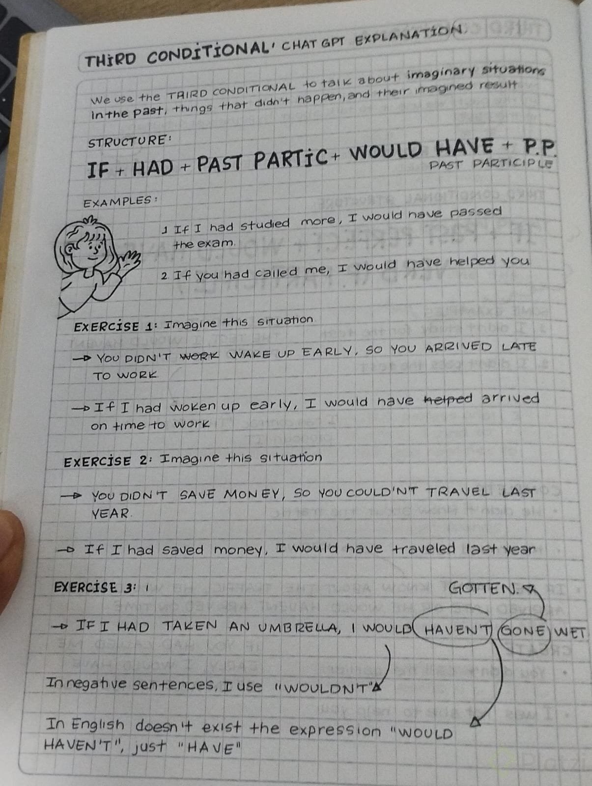 - Oración condicional: If I hadn’t worked so much, I wouldn’t have burned out.