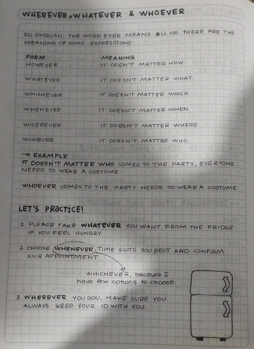 - Ejercicio interactivo: Imagina situaciones diarias y trata de emplear "donde sea", "cuando sea", "quien sea", etc. en tus pensamientos.