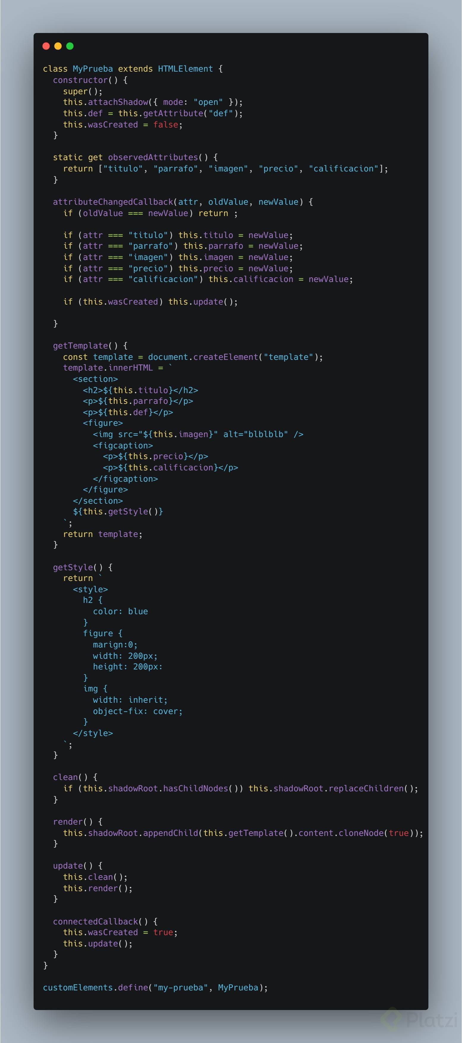 Al usar attributeChangedCallback, no solo optimizas cómo los atributos influyen en la interfaz de usuario. También se refuerza la arquitectura del componente para que sea más independiente y flexible.