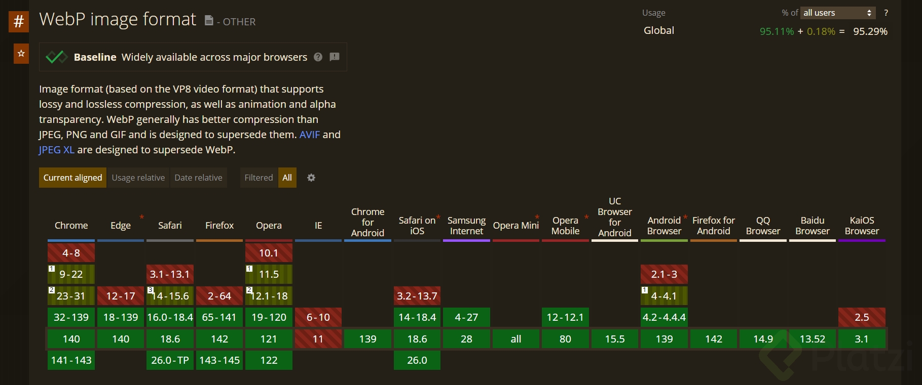 - Formatos de imagen avanzados: WebP es un formato de imagen creado por Google que podría convertirse en estándar debido a su eficiencia. Aunque actualmente no tiene un soporte universal en navegadores, es recomendable estar atentos a su evolución.