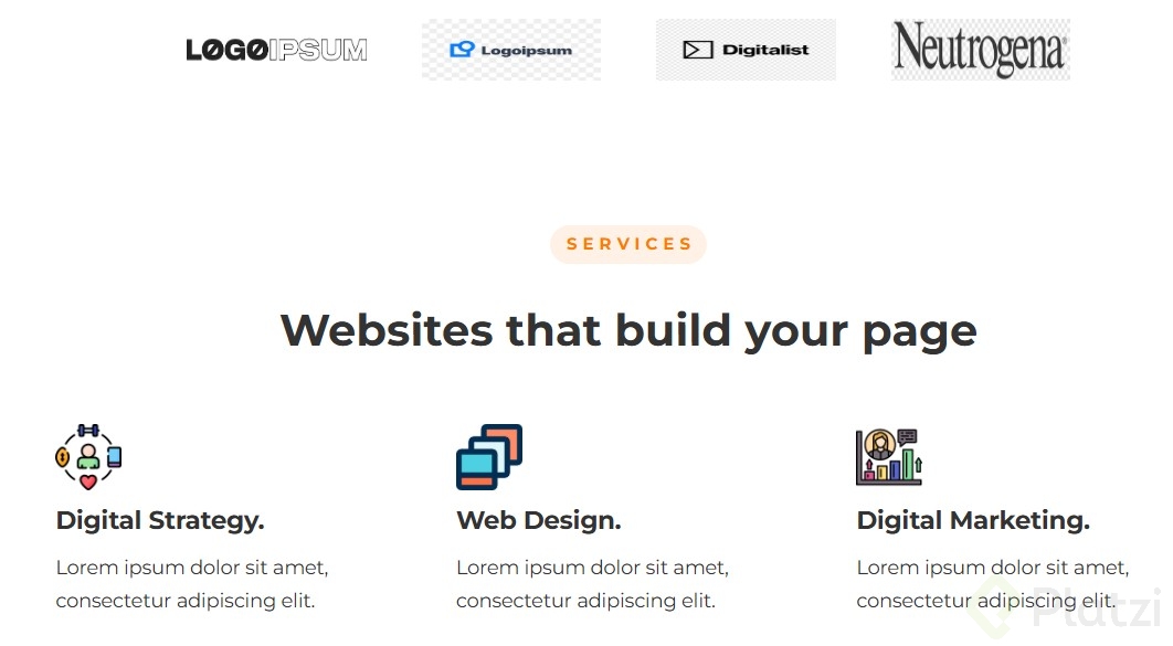La inclusión de logotipos de clientes o colaboradores es un método efectivo para ganar confianza y mostrar la trascendencia de tus trabajos anteriores. Para construir una barra de logotipos: