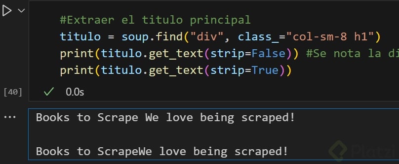 Con strip=True eliminamos los espacios extra del texto obtenido.