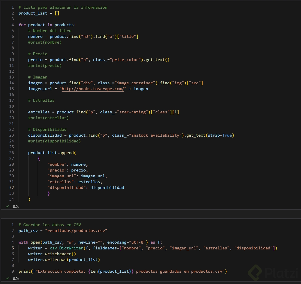 ¡Te invito a participar en el desafío propuesto: intenta obtener también el número de estrellas de cada libro y si está en stock! Deja tu solución en los comentarios.