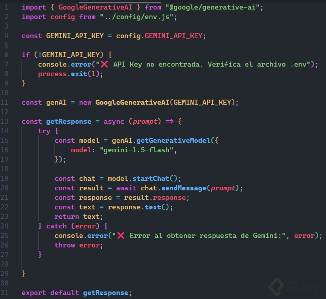 Con la lógica desarrollada y las claves en su lugar, el siguiente paso es integrar este servicio en la aplicación existente. Esto implica exportar la función openAiService y utilizarla en el punto del bot donde se desea proporcionar respuestas basadas en inteligencia artificial.