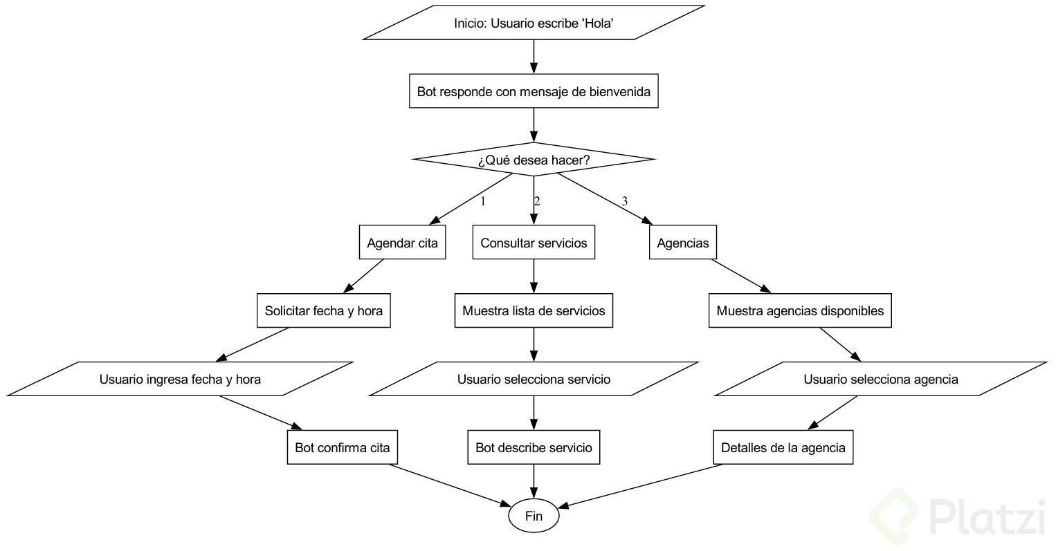 Si bien solo se permiten tres botones, es posible estructurar múltiples submenús para facilitar otras opciones. Esto implica pensar en los flujos de cada sección (como agendar una cita) y decidir si el usuario seguirá usando botones o si se guiará mediante mensajes de texto.