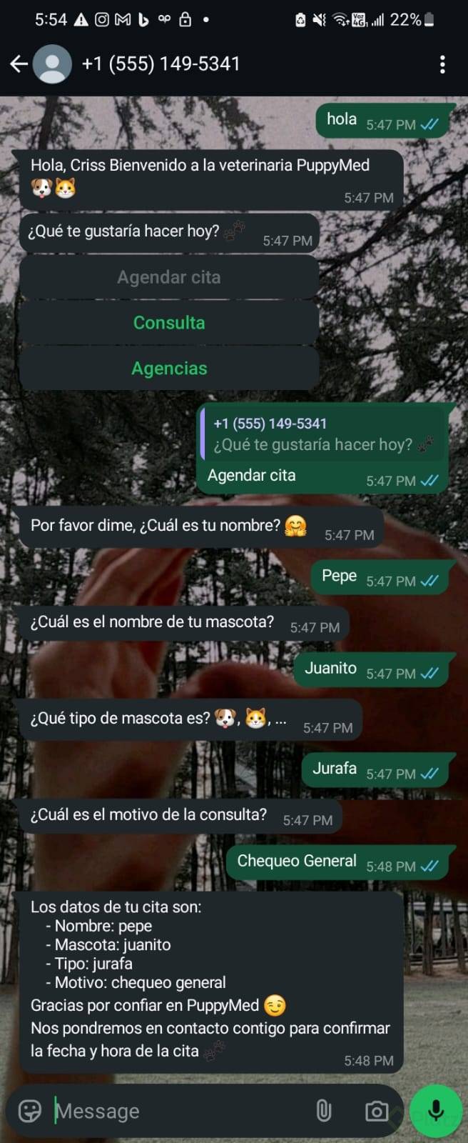 Envío de Contacto en Emergencias Veterinarias vía WhatsApp