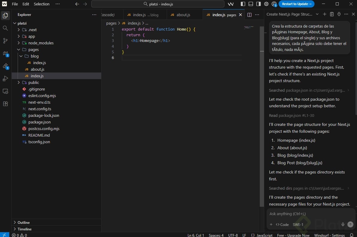 Crear un portafolio profesional con Next.js es más simple cuando se combina el modo Code de Windsurf con Cascade. Aquí verás cómo escribir archivos y ejecutar comandos directamente desde el editor, aprovechar entrada por voz e imágenes, y partir de un wireframe en Figma para guiar la estructura del sitio.