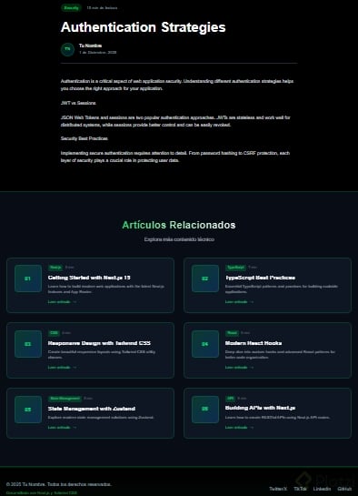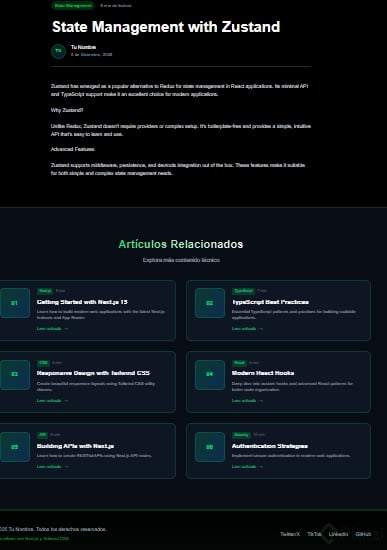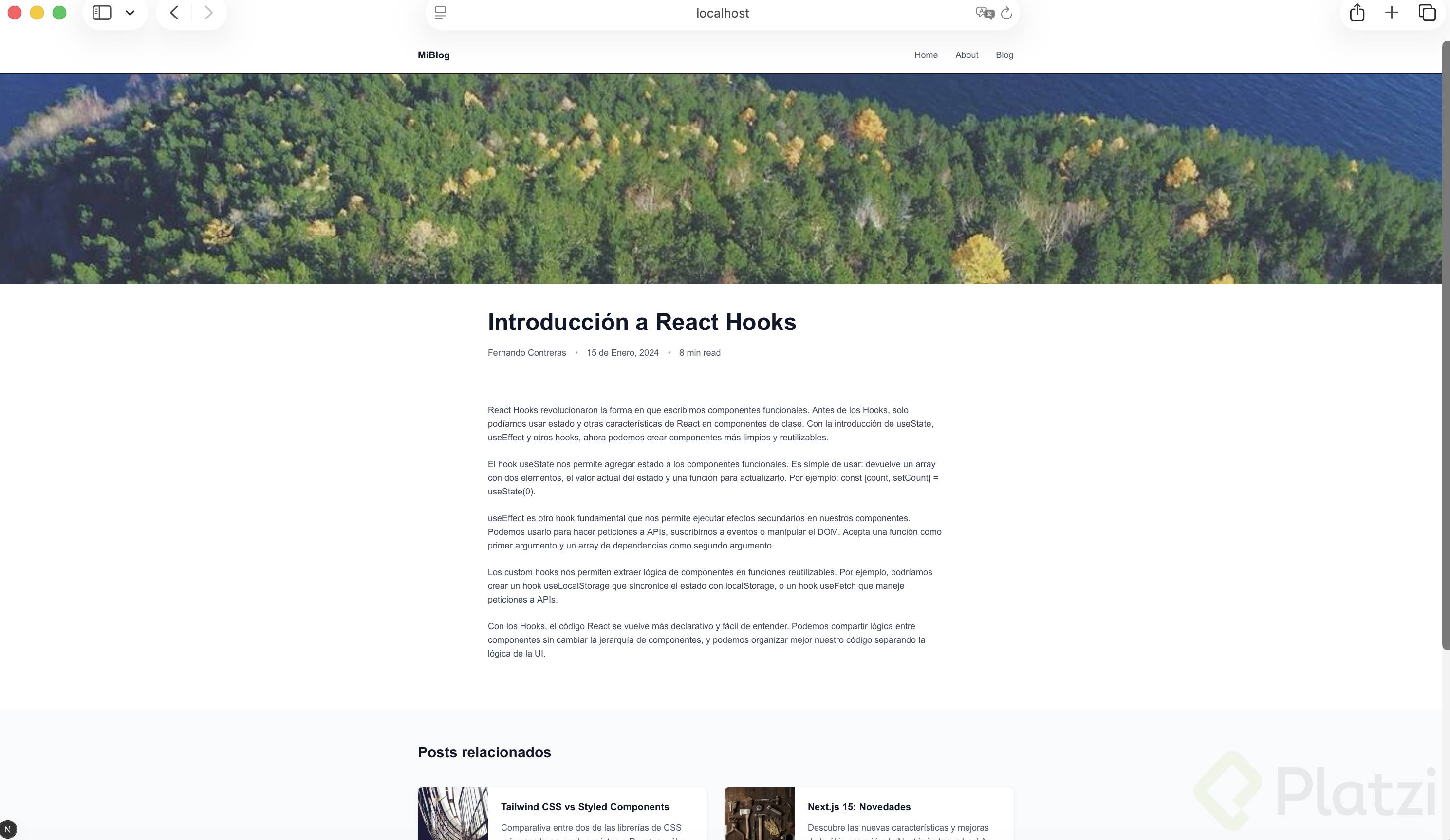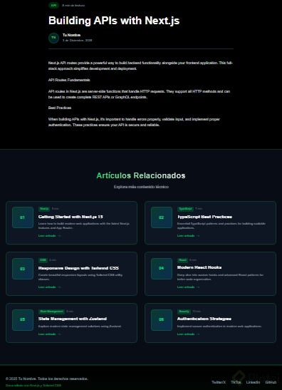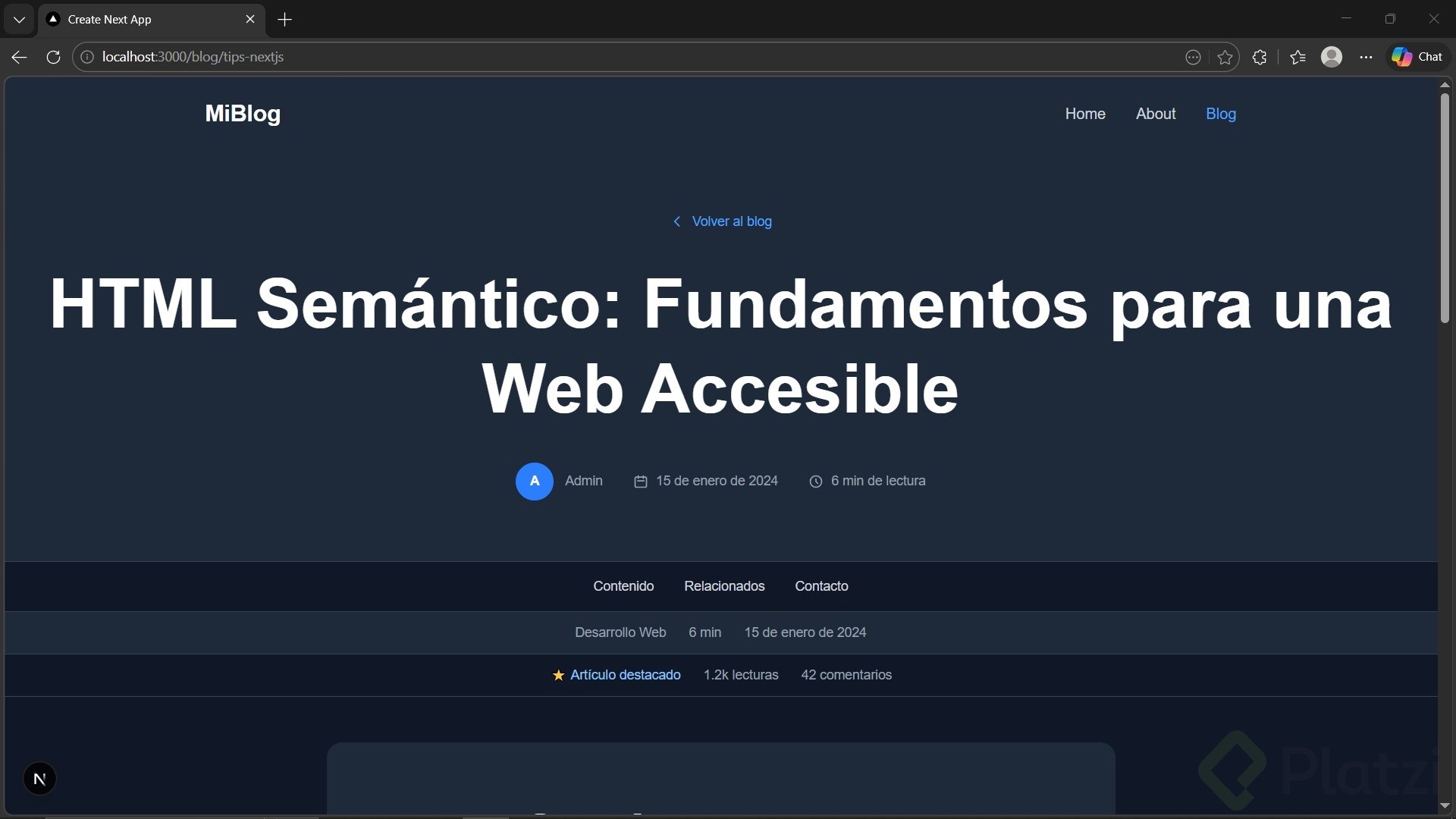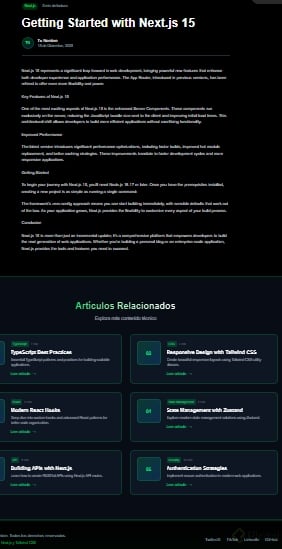 - El post de Next.js ya muestra título, autor y contenido; aparece un issue de estilos pendiente de refactor.