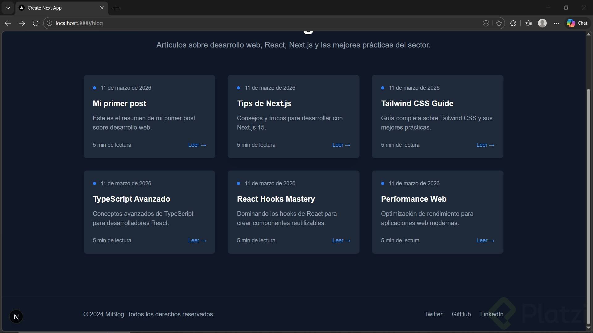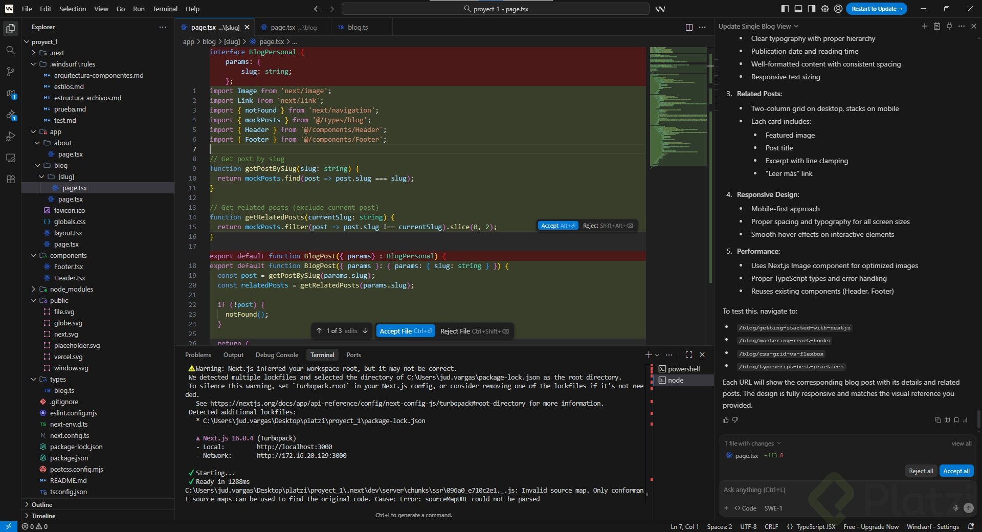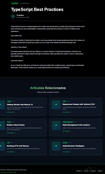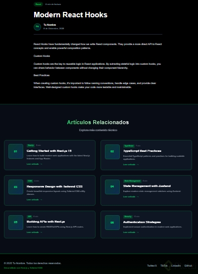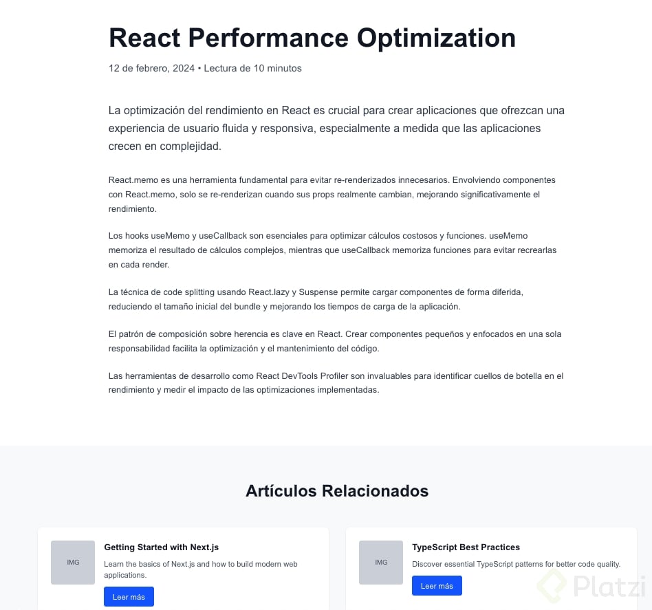 - El post de Next.js ya muestra título, autor y contenido; aparece un issue de estilos pendiente de refactor.
