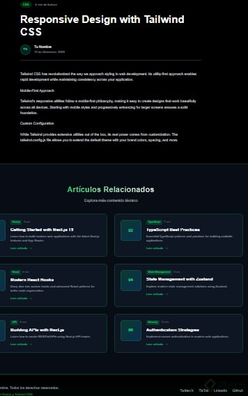 - Confirmar elementos: hero section, contenido principal, relacionados, footer.