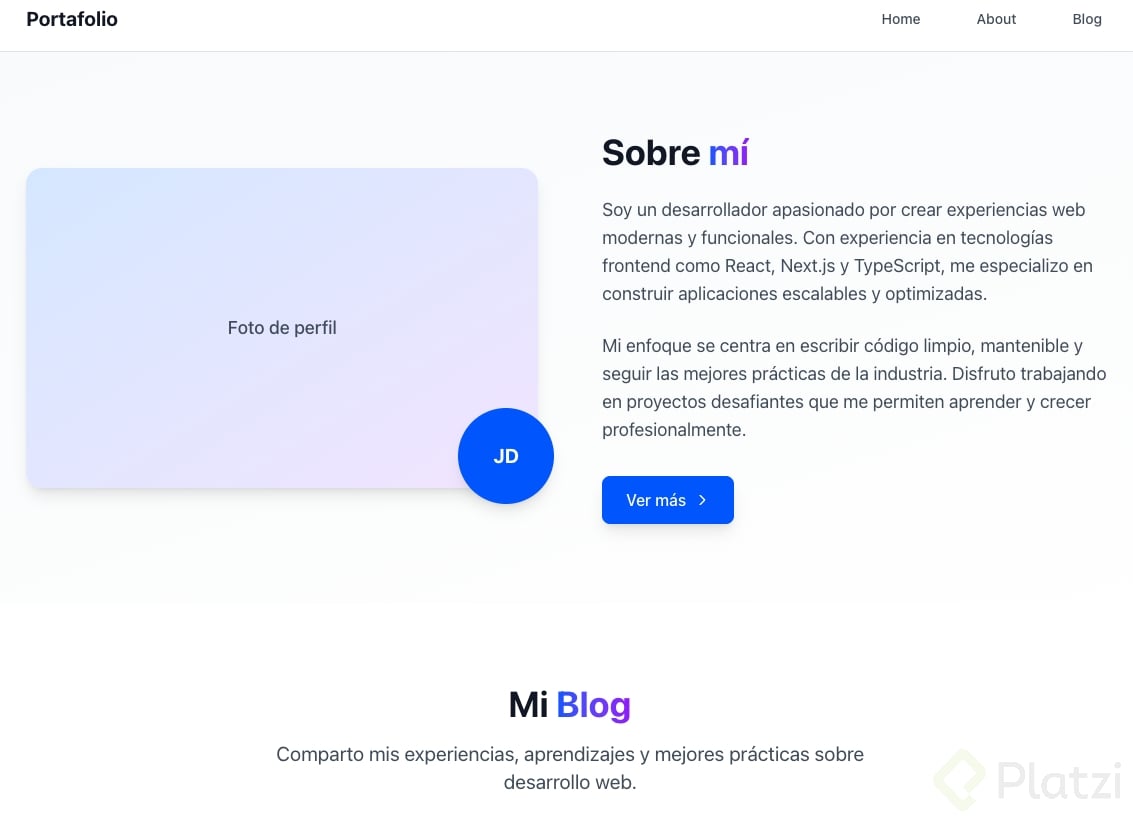 Con la base lista, puedes iterar con prompts breves para ajustar contenido y layout sin romper la estructura. Más adelante, tiene sentido refactorizar header y footer como componentes y llevarlos a un layout de Next.js.