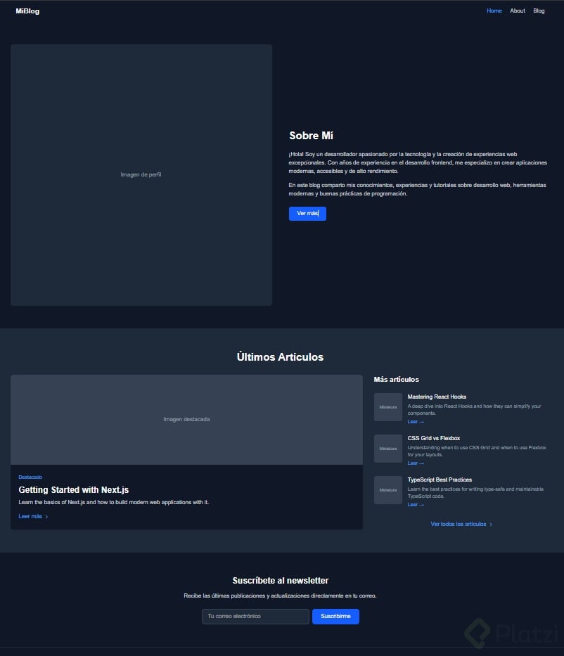 Se generó un mock de posts para poblar el listado del blog. Incluye: id, title, summary, slug y un booleano feature que marca el post destacado y más grande en la homepage. Luego, una función mapea los posts para renderizarlos.
