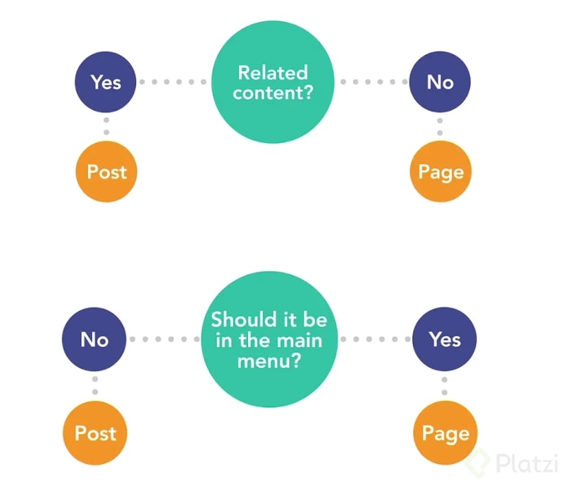 Al crear un sitio, es útil definir un árbol de páginas y decidir dónde se utilizarán entradas o posteos. Así, puedes plantear qué características particulares tendrá tu web.