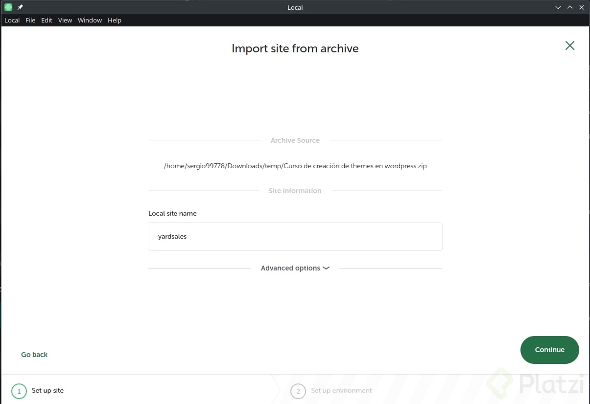 Ahora solo queda esperar que Local WP termine de importar el proyecto. Al finalizar podrás continuar desde el punto en que quedó nuestro theme cuando finalizamos el Curso de Creación de Temas para WordPress.