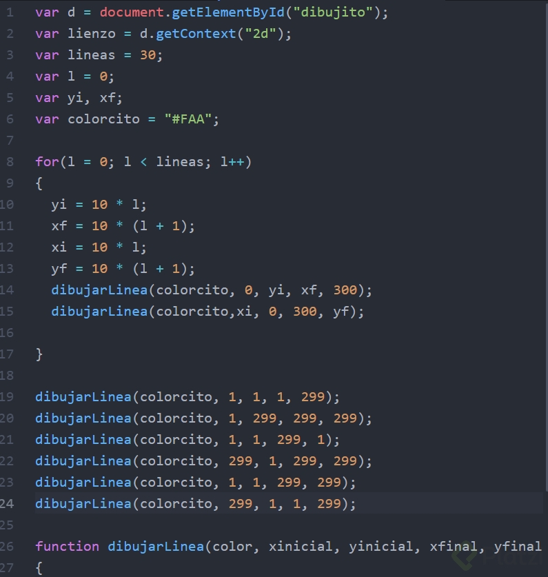 PreguntaHola, tengo error en mi código que solo me muestra la mitad superior del canvas, lo revisé e incluso escribí todo nuevamente pero sigo con el mismo problema. Las diagonales las hice para ver si era efectivamente en el centro de la imagen el corte.