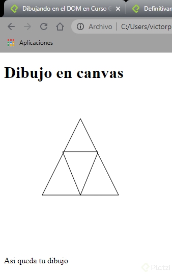 var D = document.getElementById("dibujito"); var Lienzo = D.getContext("2d"); Lienzo.beginPath(); Lienzo.strokeStyle = "black"; Lienzo.moveTo(150, 50); Lienzo.lineTo(75, 200); Lienzo.stroke(); Lienzo.closePath(); Lienzo.beginPath(); Lienzo.strokeStyle = "black"; Lienzo.moveTo(150, 50); Lienzo.lineTo(225, 200); Lienzo.stroke(); Lienzo.closePath(); Lienzo.beginPath(); Lienzo.strokeStyle = "black"; Lienzo.moveTo(75, 200); Lienzo.lineTo(225, 200); Lienzo.stroke(); Lienzo.closePath(); Lienzo.beginPath(); Lienzo.strokeStyle = "black"; Lienzo.moveTo(150, 200); Lienzo.lineTo(115,115 ); Lienzo.stroke(); Lienzo.closePath(); Lienzo.beginPath(); Lienzo.strokeStyle = "black"; Lienzo.moveTo(150, 200); Lienzo.lineTo(185, 115); Lienzo.stroke(); Lienzo.closePath(); Lienzo.beginPath(); Lienzo.strokeStyle = "black"; Lienzo.moveTo(115, 115); Lienzo.lineTo(185, 115); Lienzo.stroke(); Lienzo.closePath();