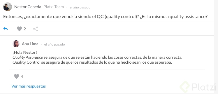 PreguntaEntonces, ¿exactamente que vendría siendo el QC (quality control)? ¿Es lo mismo a quality assistance?