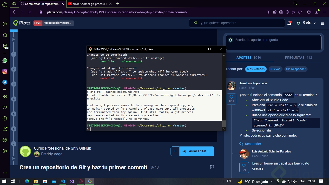 alguno me podria ayudar con este error: Another git process seems to be running in this repository, e.g. an editor opened by ‘git commit’...
