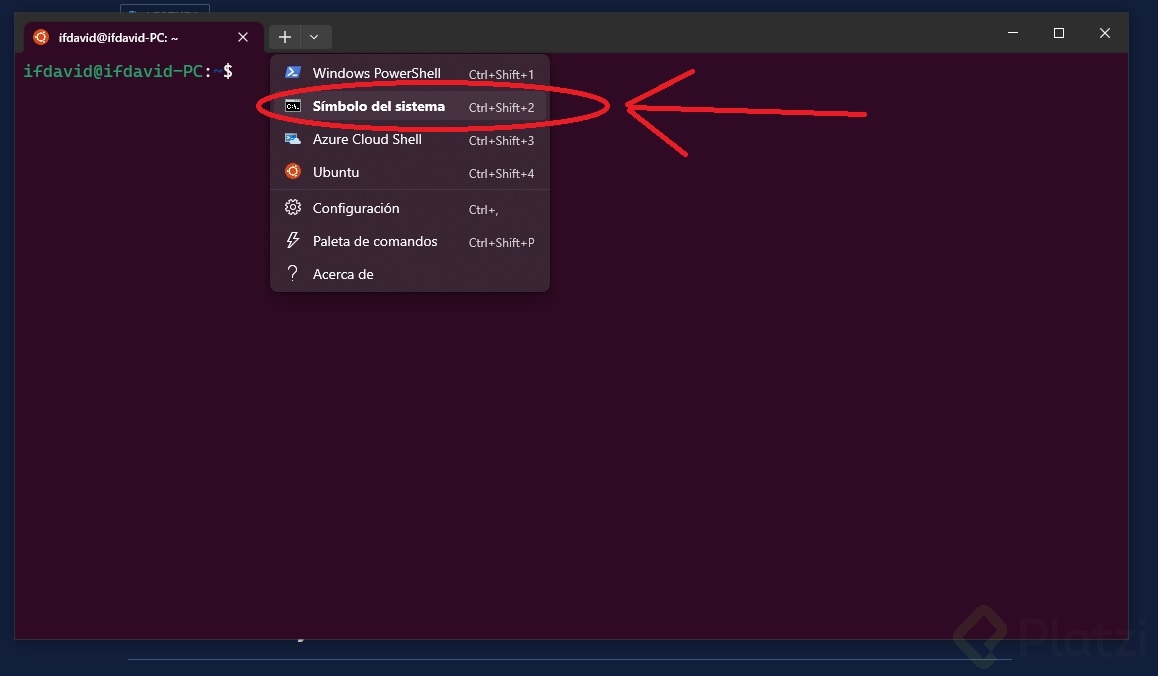 Si quisieras usar Ubuntu en el sistema de archivos de Windows, debes abrir WSL desde 'simbolo del sistema'