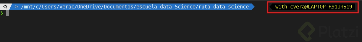 - volvemos a cargar zsh con el comando source y ya deberíamos ver nuestro username/host en la barra de la derecha del promt: