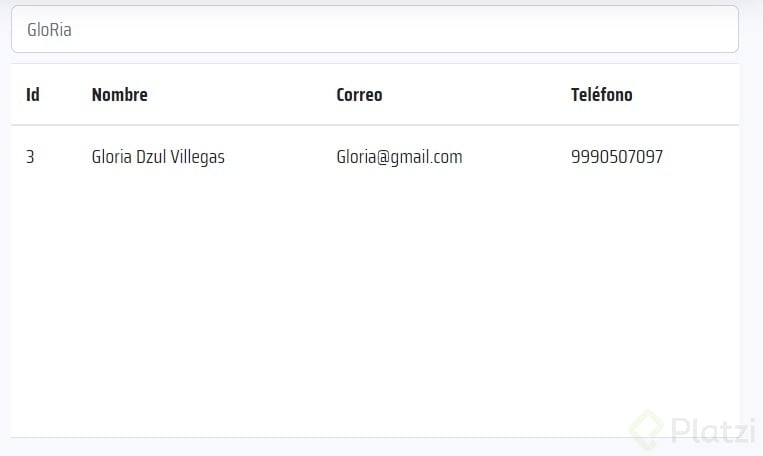 En tu archivo .html agregar un input de tipo texto y una tabla con datos: